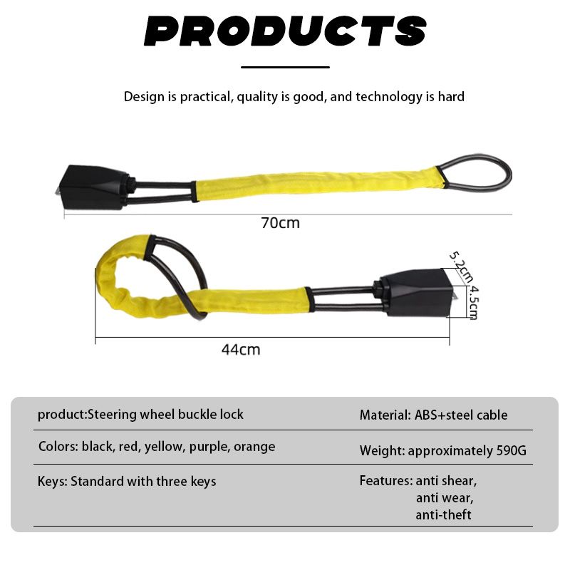 Car Steering Wheel & Seat Belt Lock - 17-inch Universal Anti-Theft Device for Vehicles, SUVs, Golf Carts | Compact & Lightweight Security Lock with Multi-Function Keys