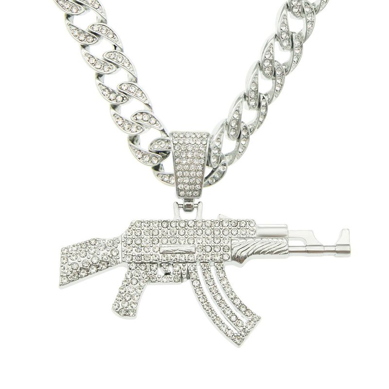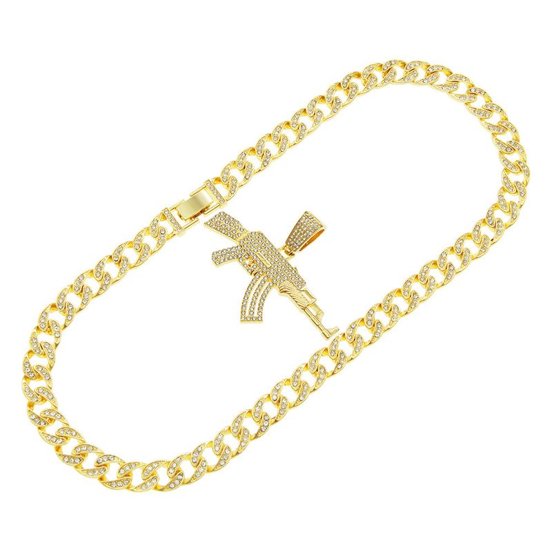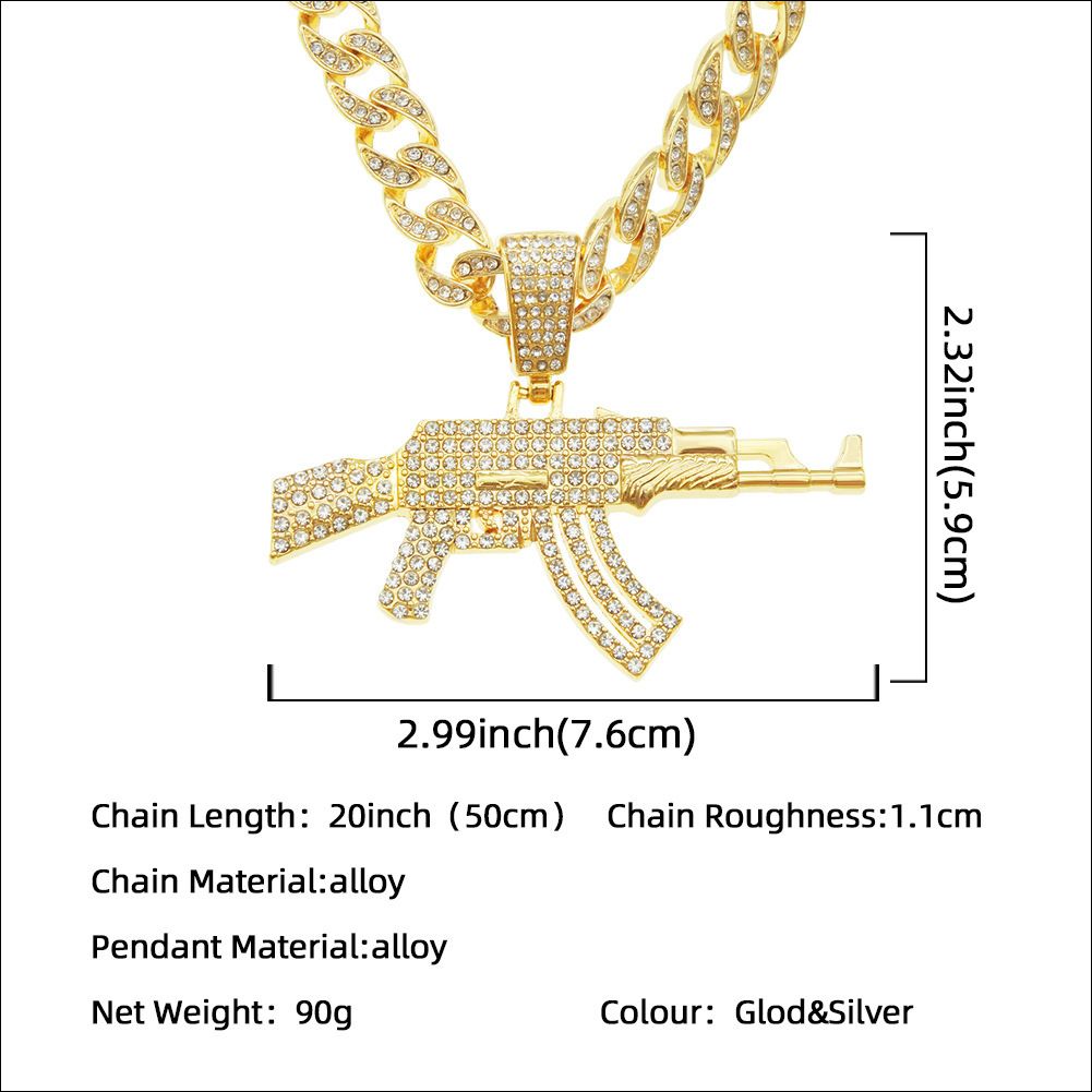 Edgy Western Punk Hip-Hop Rap Style Gun Pendant Necklace – Trendy Men's Nightclub Cuban Chain