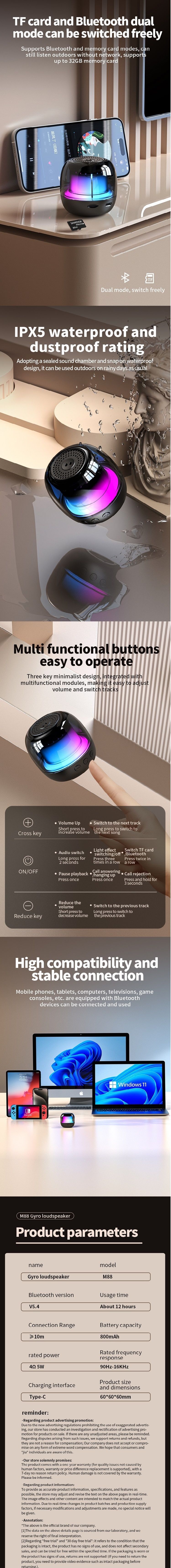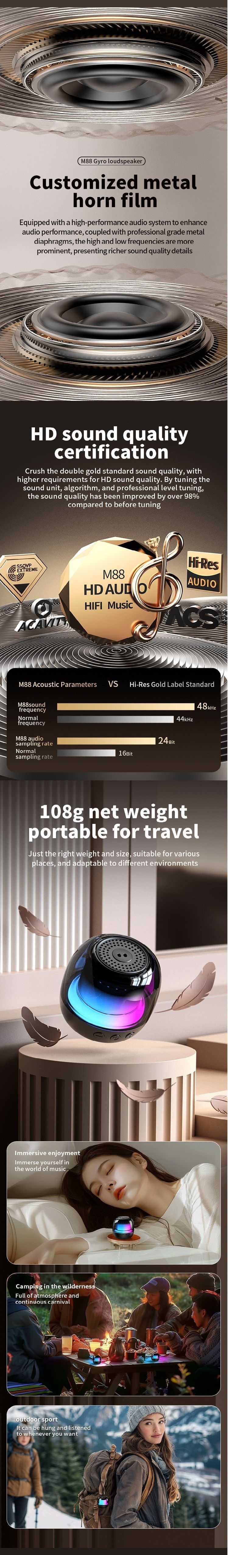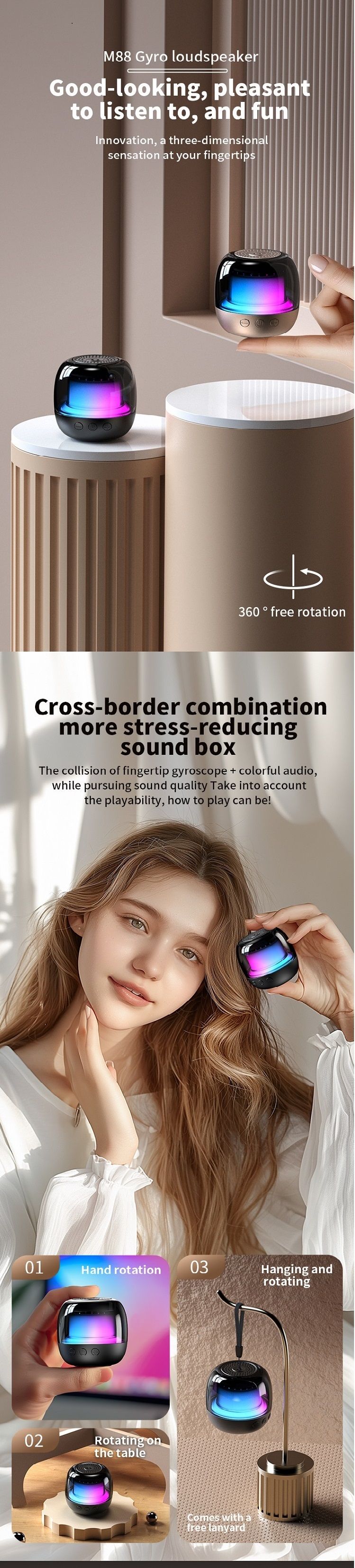 Finger Tip Stress Relief Spinner Wireless Speaker Portable Mini Speaker with RGB Lights and SD Card Support