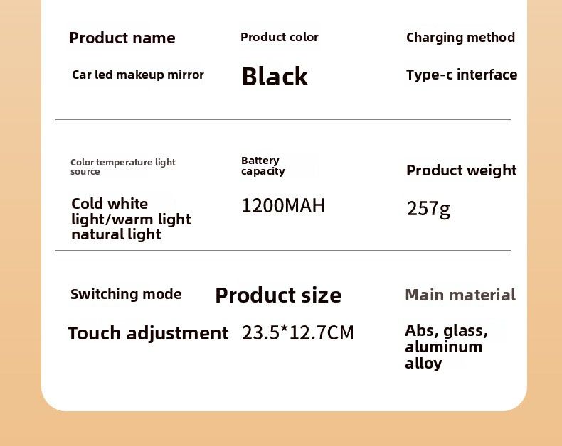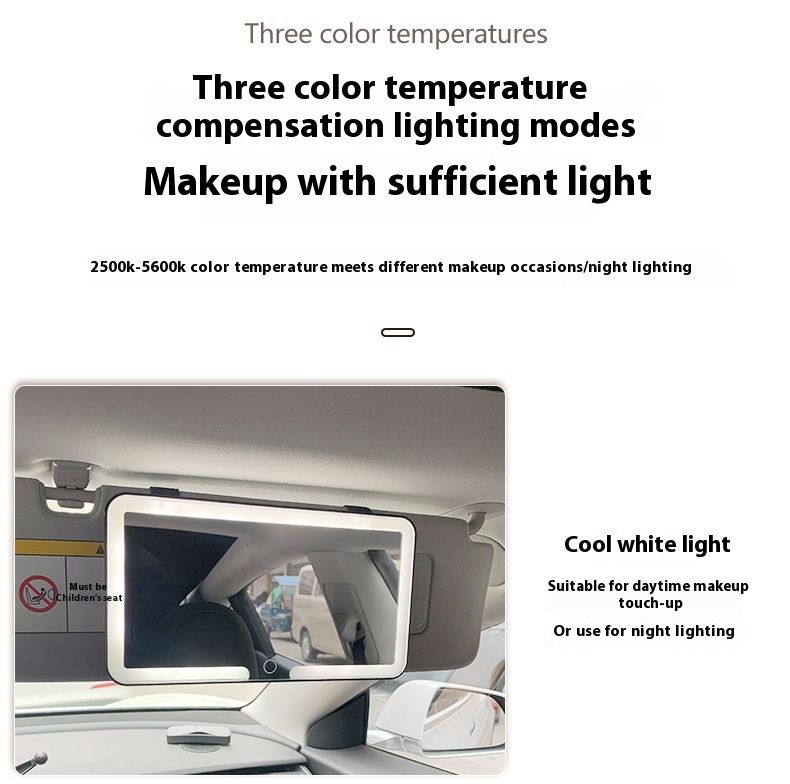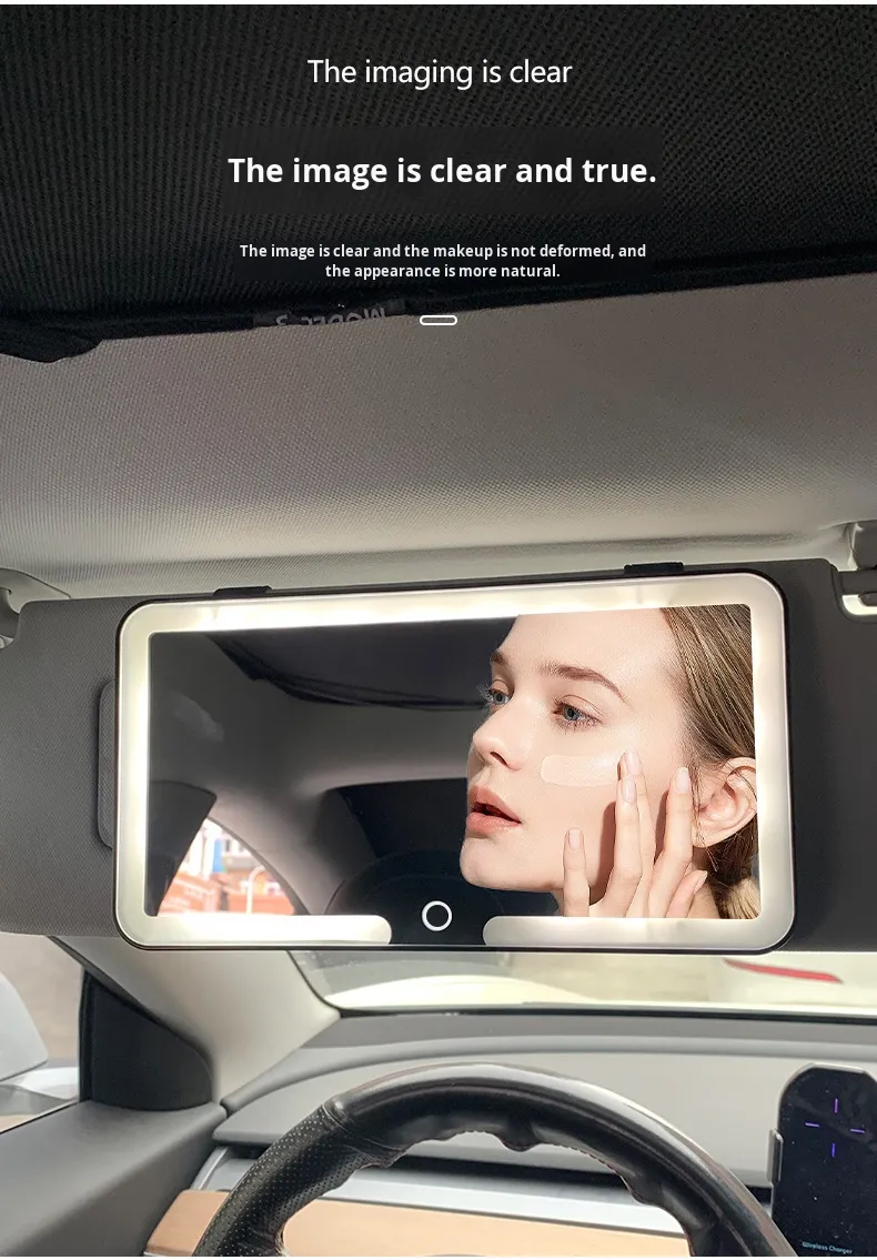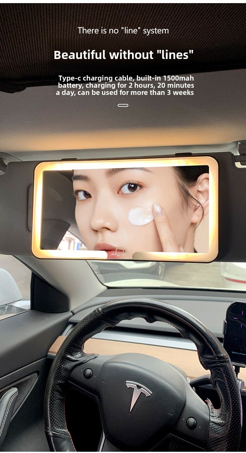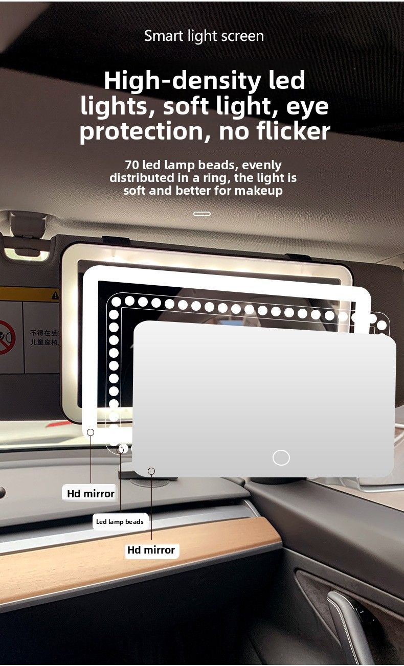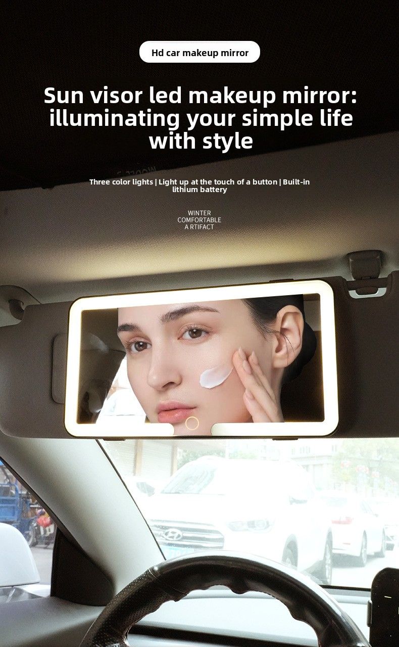 High-Definition Car-Mounted Makeup Mirror with LED Light Sun Visor Fill Light Interior Accessories Stylish Desktop Mirror