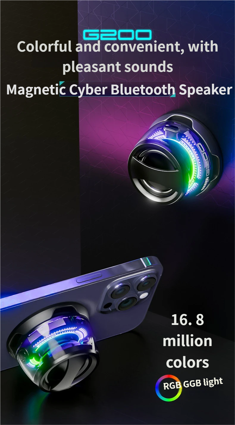 HOT G200 Magnetic MINI Speaker Magnet Phone Stand Small Portable with RGB for Camping Party Outdoor